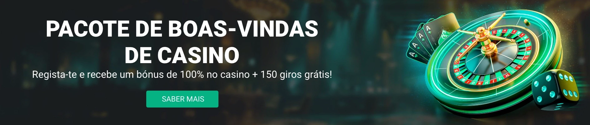- Pacote de Casino: Até 1500€ + 150 rodadas grátis.